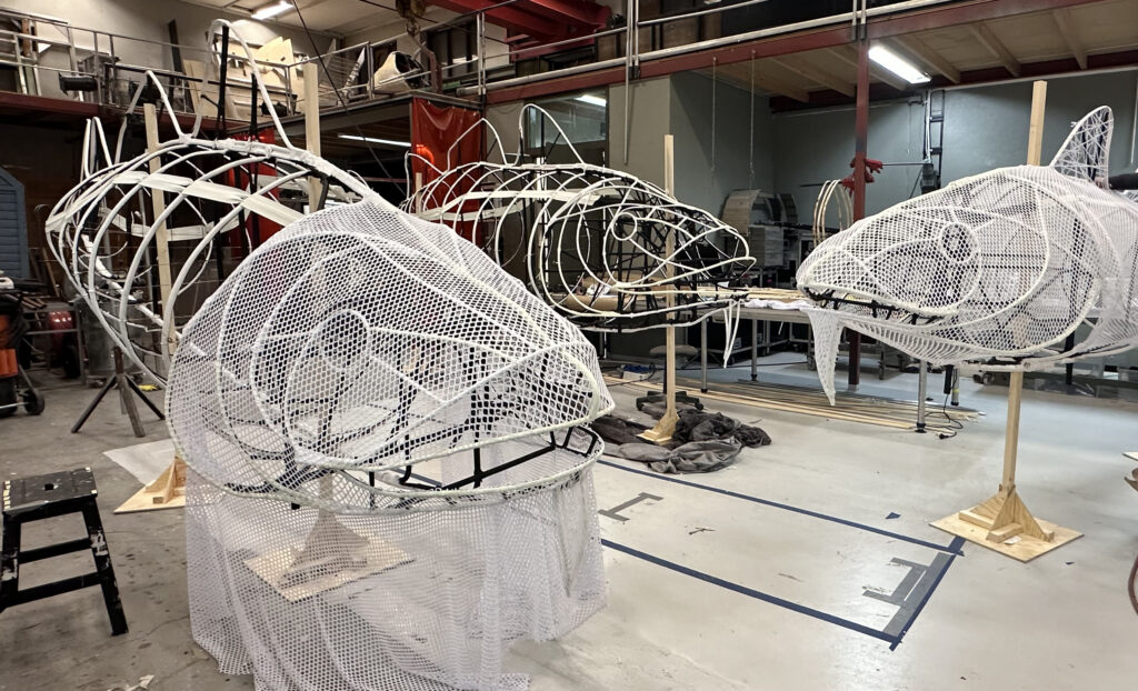 Der Kabeljau genießt seid jeher in Norwegen eine wichtige kulturelle Bedeutung und gilt bis heute als wichtige Lebensgrundlage für die Küstenbewohner! Für die Eröffnungsveranstaltung des Kulturhauptstadtjahres von Bødø 2024 wurden diese 7 „Kabeljaupuppen“ zwischen 4 und 7 Metern angefertigt. Gemeinsam mit dem Künstlerkollektiv Phase 7 und der Regisseurin Roscha A. Säidow plante ich diese Objekte so leicht und beweglich wie möglich herzustellen um sie später bei Wind und Wetter auf Wasser aufführen zu können. Unterstützt wurden wir von Studierenden der HfBK Dresden und dem Nordlandtheater Mo I Rana.