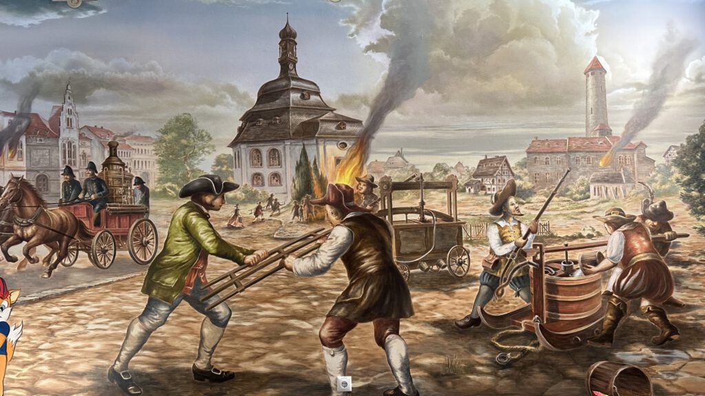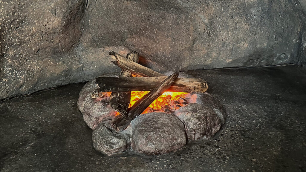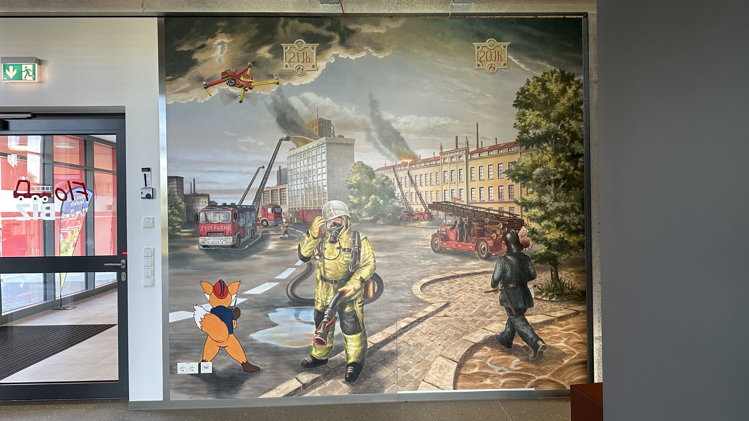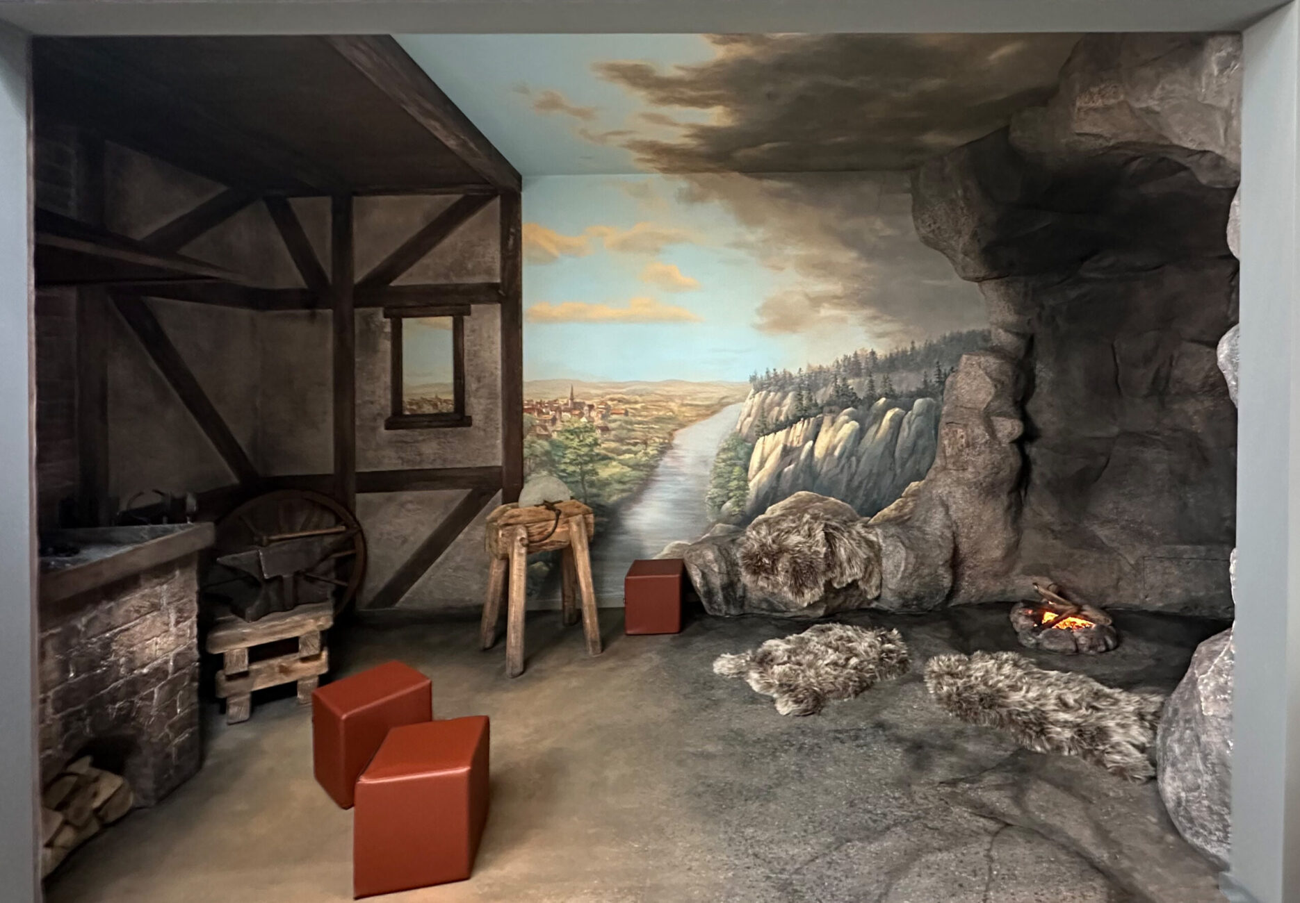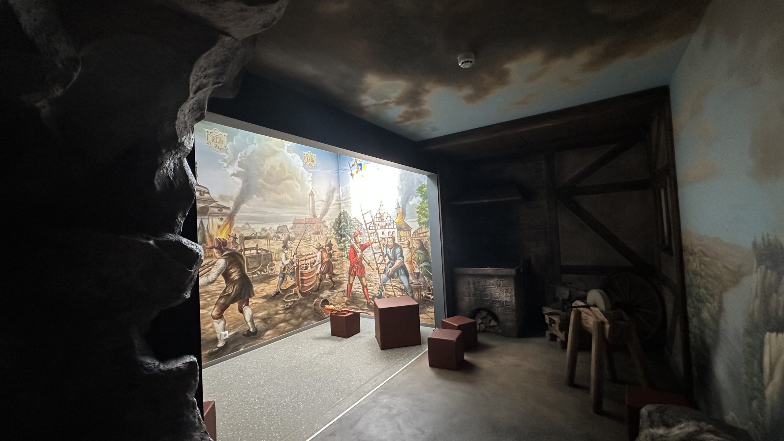 Hier wird die Geschichte des Feuers erzählt, wie es zum Menschen gekommen ist und wie er es sich später im Handwerk zu Nutze machte. In einem begehbaren halboffenen Containernachbau können Kindergruppen in einer steinzeitlichen Höhle mit Feuerstelle und einem Nachbau einer alten Schmiede erfahren welchen Werdegang das Feuer zusammen mit dem Menschen gegangen ist. Der Theatermaler Andreas Harenberg entwarf zudem noch im Außenbereich ein Wandbild mit der Geschichte der Feuerwehr.