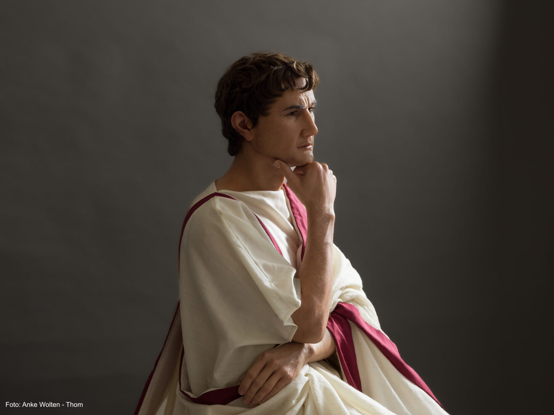 Kaiser Augustus Für die Ausstellung „Augusta Emerita“ im Römerpark Xanten wurde diese lebensechte Figur des Kaiser Augustus angefertigt. Er sitzt vor seinem Porträt aus Mamor und betrachtet es. Veröffentlicht in Lebensechte Figuren Vorheriger Beitrag: Sein Auftritt Nächster Beitrag: Frankenkrieger